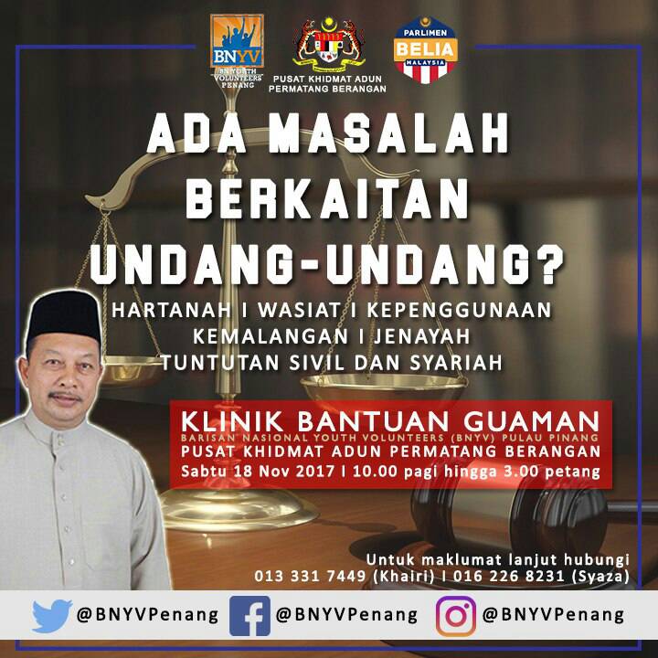 Bnyv Penang On Twitter Klinik Bantuan Guaman Bnyv Pulau Pinang Bersama Pusat Khidmat Adun Permatang Berangan Akan Dibuka Pada Esok Dari 10 Pagi Sehingga 3 Ptg Jom Kita Ke Sana Utk Dapatkan